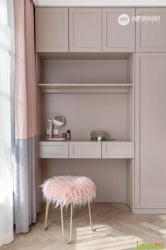 小仙女的梳妝區(qū),抽屜方便了收納,層板內(nèi)藏?zé)?,可以很好的補(bǔ)光。