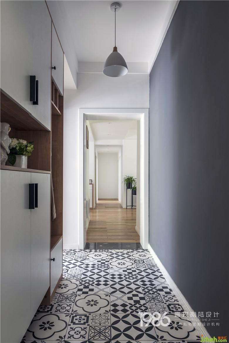 而門廳另一側(cè),用整面手繪黑板墻裝飾,這里將會(huì)成為孩子的涂鴉區(qū)域,放飛孩子天性又不用擔(dān)心家中的其他區(qū)域被涂抹。白色的入戶門與白色鞋柜,室內(nèi)設(shè)計(jì)師搭配黑白花紋的地磚,讓入戶區(qū)域整體協(xié)調(diào)而又不逼仄。