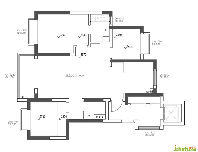 房子屬于一梯一戶房型,所以玄關(guān)換鞋處就放在了樓梯到進(jìn)門的走廊里。 原始戶型圖 1、從平面圖上進(jìn)門就看到凸出的墻體,影響視覺(jué)和感官; 2、南次臥和北次臥空間都比較小,如何利用空間,需要考慮; 3、整體收納空間比較少; 4、主臥主衛(wèi)正對(duì)著床入住舒適性很差,開門的位置也影響了主臥收納功能; 整體裝修風(fēng)格及色調(diào)和屋主想要的類型不符合,地板及墻面裝飾都需要重新翻新。
