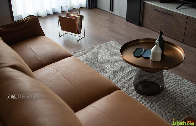 電視背景墻從居住者的需求出發(fā),以抽屜立體柜的組合形式強(qiáng)調(diào)收納,貼合空間尺度的同時(shí)又不顯得壓抑。男主人比較喜歡音響,每個(gè)空間都有音響,電視也是選擇大屏幕的,擁有超大高清的視覺(jué)享受。 將陽(yáng)臺(tái)納入客廳,不僅可以加強(qiáng)客廳的縱深感,而且陽(yáng)光透過(guò)窗簾灑進(jìn)房間,讓整個(gè)空間更加寬敞、明亮。金屬和玻璃材質(zhì)的茶幾,在加入幾何元素的擺件之后,更加出挑,給空間帶來(lái)了不一樣的時(shí)尚感。