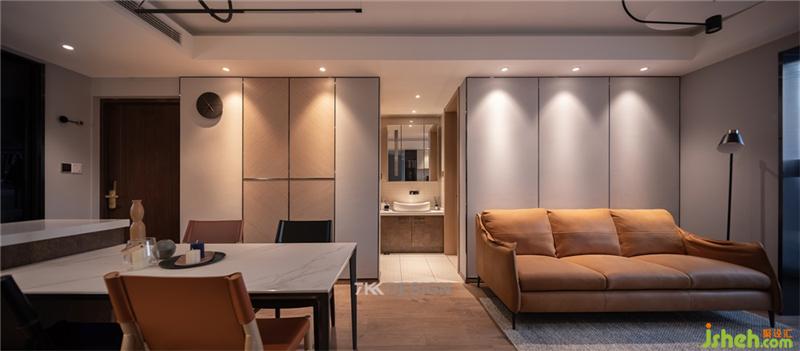 本案屋主是一對(duì)中年夫妻,男主人紳士有品味,女主人溫婉又時(shí)尚,如果他們有了小孩一定也會(huì)很優(yōu)秀,但是他們卻選擇了丁克,不要小孩,他們說(shuō)很享受兩人的世界,想要追求純粹的愛(ài)情,即使結(jié)婚好多年,兩人的感情卻絲毫不減。對(duì)于追求高品質(zhì)生活的夫妻來(lái)說(shuō)在自己家的裝修設(shè)計(jì)上更希望能個(gè)性,獨(dú)特些,但是房子本身是精裝房,而且交付的情況只能說(shuō)是湊合,而他們是不愿意湊合的,所以找到了我們希望重新翻新。 他們很喜歡音樂(lè),希望所到之處都能聽到喜歡的音樂(lè); 他們都愛(ài)看電視,希望有超大屏幕的視覺(jué)享受; 他們也愛(ài)收藏精美的擺件,希望能有可以展示的空間;他們平時(shí)在家辦公,需要獨(dú)立書房; 雖然父母離他們居住的不遠(yuǎn),也要預(yù)留父母偶爾入住的空間; 他們的衣物比較多,平時(shí)也比較注重儀式感,需要預(yù)留衣帽間及化妝的空間; 即使人不多,也想保留原始的兩衛(wèi)功能。 最終這套三房?jī)尚l(wèi)的精裝房在他們要求不大動(dòng)原始硬裝格局的情況下,設(shè)計(jì)師通過(guò)局部小改、軟裝搭配和對(duì)選材的嚴(yán)格把控,為屋主量身定制了符合他們兩人生活習(xí)慣的設(shè)計(jì)規(guī)劃。整體的風(fēng)格利用工業(yè)風(fēng)做舊的概念將原始的魅力與現(xiàn)代時(shí)尚質(zhì)感結(jié)合,在碰撞與融合中,彰顯出獨(dú)特的誘惑張力:時(shí)尚、個(gè)性。