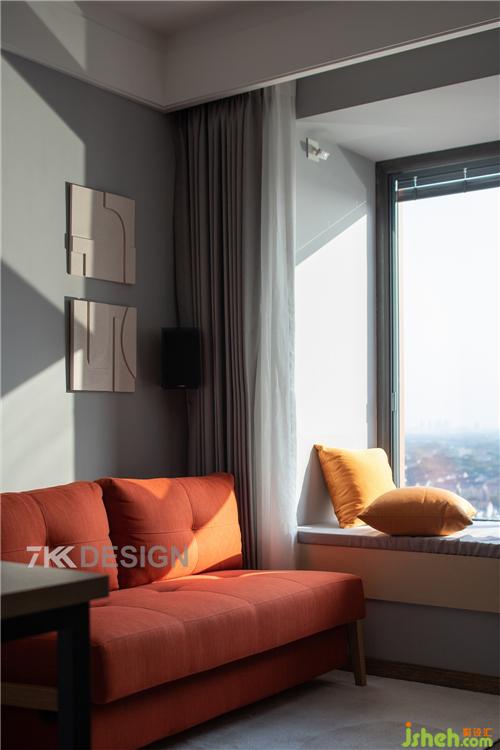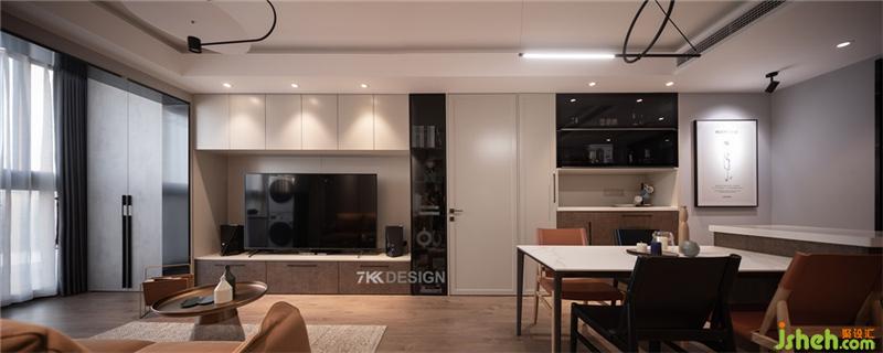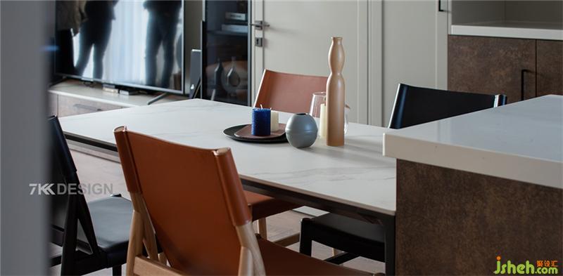 陽臺儲物柜、電視柜,隱形門,餐邊柜一體鏈接設(shè)計(jì),保持空間的統(tǒng)一性,上海裝修設(shè)計(jì)使用不同的材質(zhì)、造型豐富空間的層次感。黑色與橙色搭配的餐椅設(shè)計(jì),為這個(gè)家融入了更多的精致細(xì)節(jié),處處彰顯著屋主對生活品質(zhì)的追求。