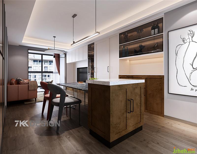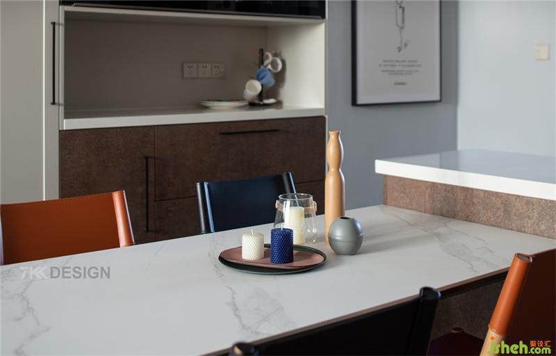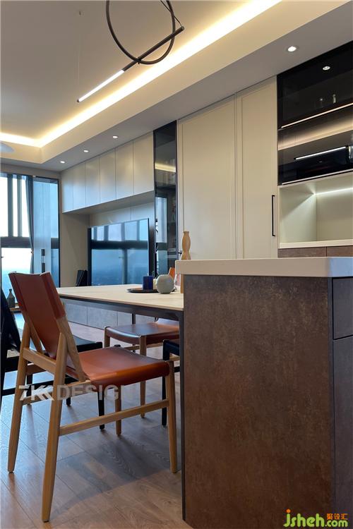 現(xiàn)在越來越多的家庭喜歡把廚房和餐廳成為家庭活動的中心,餐廳中島臺的設(shè)計(jì),讓全家可以圍繞它來做烘培,連接家人感情,加深情感,同時(shí)又兼具收納柜,吧臺、備餐臺的功能。