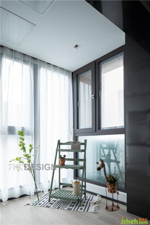 我們去拍攝時業(yè)主還沒住進來,陽臺花架上已經放置了很多植物。