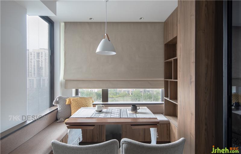 把本北陽臺兩邊的墻體打掉,靠窗設計成卡座,采光性非常不錯。 卡座對于餐廳來說就像我們經常有時候去西餐廳或者營業(yè)場所餐廳去吃飯,總是會去尋找那些靠邊靠墻有卡座的一些區(qū)域坐下,卡座帶給人一種依靠穩(wěn)重安全的感覺,同時卡座本身也具備儲藏的功能,下面空間都可以用來做儲藏,做門板里面可以放多東西,可以拿來使用。 卡座餐廳設計了折疊門,當拉起來的時候,變成一個獨立的空間,偶爾逢年過節(jié)的時候招待客人也不錯,卡座靠墻一側打造了整面墻的定制柜,既是日常收納、書柜,展示區(qū),也可做餐邊柜使用。有需要還可以做折疊柜子床,變成一個臨時的客房也不錯。