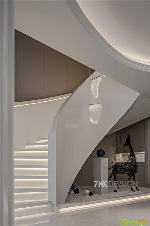 樓梯扶手與臺(tái)階都嵌入暗藏視燈帶,使得空間充滿高級(jí)感,樓梯的層次感瞬間不一樣,同時(shí)也讓上樓梯都有了滿滿的儀式感!