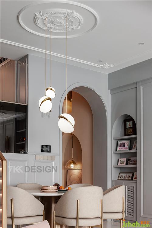 餐廳吊燈選擇錯落簡約的白色半圓球裝飾,為餐廳增添藝術(shù)情調(diào)氛圍,可以隨意燈光調(diào)節(jié)色溫,營造不同的餐廳環(huán)境。