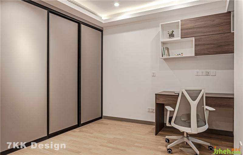 在這30㎡的辦公區(qū)域,在搭配木飾面地板,讓人安靜工作,工作累了可以看著窗外,旁邊的墻面是鏤空打造了一個窗臺,保持通風是主要。此區(qū)域還可以切換成健身&瑜伽區(qū)域。同時我們給業(yè)主增加了房間的第二個心臟(衣帽間),可以把整個客廳的雜物放置在這個衣帽間里,不管是健身器材還是換洗下來的被褥枕頭套都可以放在里面上海室內(nèi)設(shè)計師。