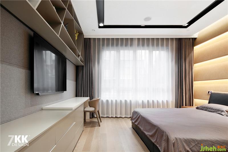 父母的臥室空間打造溫馨舒適的睡眠環(huán)境,臥室背景墻采用軟包造型墻內(nèi)嵌燈帶造型高品質(zhì)的臥室空間,也讓整體空間富有設(shè)計(jì)造型感。電視背景墻上方定制的米色烤漆吊柜作為裝飾柜和下方定制的電視柜采用同樣的材質(zhì)。簡(jiǎn)約而又不簡(jiǎn)單的時(shí)尚。