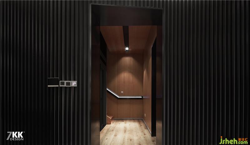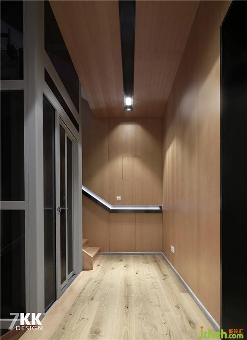 在這樣一個(gè)高品質(zhì)的生活,有著多層的空間怎么能少了電梯井的使用。走廊左側(cè)是透明電梯井,轉(zhuǎn)角處是樓梯,整個(gè)樓梯采用木飾面全包,墻面簡(jiǎn)約線條的扶手凹槽暗藏?zé)魩?,搭配淺色木質(zhì)地板,大片木質(zhì)元素的應(yīng)用讓整個(gè)空間有著溫馨的色彩。