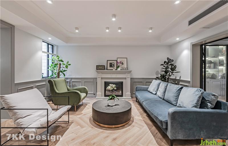 在客廳的造型上和色彩的搭配也要從簡約務(wù)實的角度出發(fā),絲絨沙發(fā)三種不同的顏色合理的注重搭配,木飾面強化型地暖地板給整個客廳帶來了溫度,身后的壁爐在冬天的時候可以溫暖整個客廳,設(shè)計師注意到客廳的方向是朝太陽升起的方向,在客廳的壁爐兩邊打造了一個落地窗放置了綠植可以凈化空氣上海裝修設(shè)計。