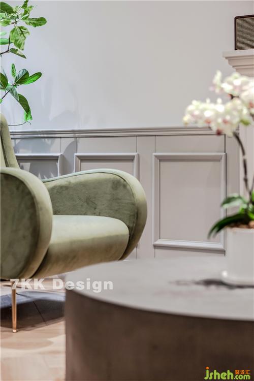 整個客廳空間,墻面采用裙擺淺灰色護墻板拼接,時尚大氣不失奢華的氣質(zhì),讓整個家居空間很有檔次。