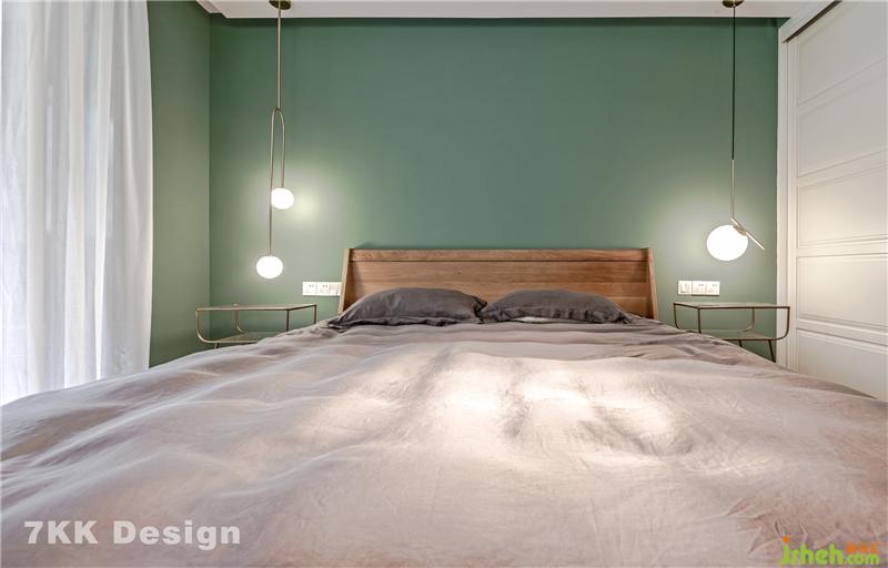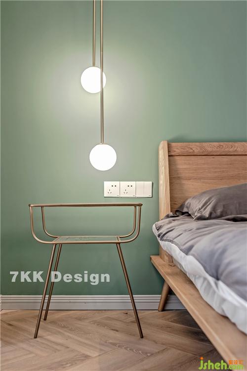 臥室采用女業(yè)主喜歡的小清新的薄荷綠,干凈清爽的墻面,在床頭的兩邊搭配著金絲腳架的茶幾,上面垂釣藝術(shù)金絲吊燈,晚上看書這個燈光剛剛好,很靜謐上海裝修設(shè)計。