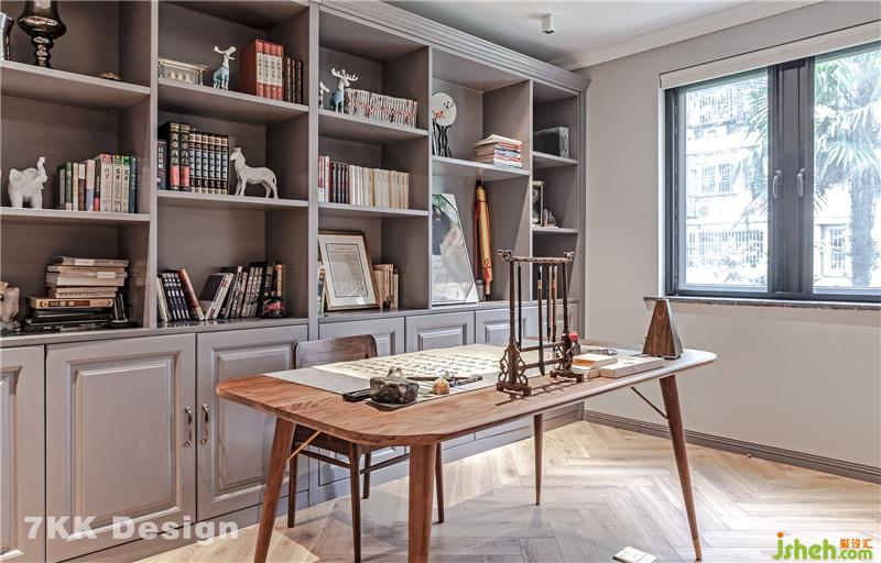 由于業(yè)主平時的業(yè)余愛好喜歡寫一些毛筆字和看一些書籍,在它的身前打造的獨具一格的木飾面臺子,靠整面墻體定制了一排櫥柜,采用不規(guī)則長方形&正方形,可以大容量的儲存書籍,下方的開放式櫥柜門里可以存放著雜物,旁邊的落地窗可以采取新鮮空氣,緩解疲勞。 簡單的書桌上擺放的筆墨紙硯,彰顯出男業(yè)主的儒者風(fēng)范,修身養(yǎng)性的文雅藝術(shù)魅力。書法文字也是一種民族文化的傳承,男業(yè)主認為對于書法藝術(shù)的追求會讓人身心健康,終生受益。在這個空間里打造一個書法愛好者的美好時光。
