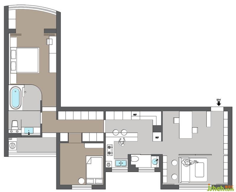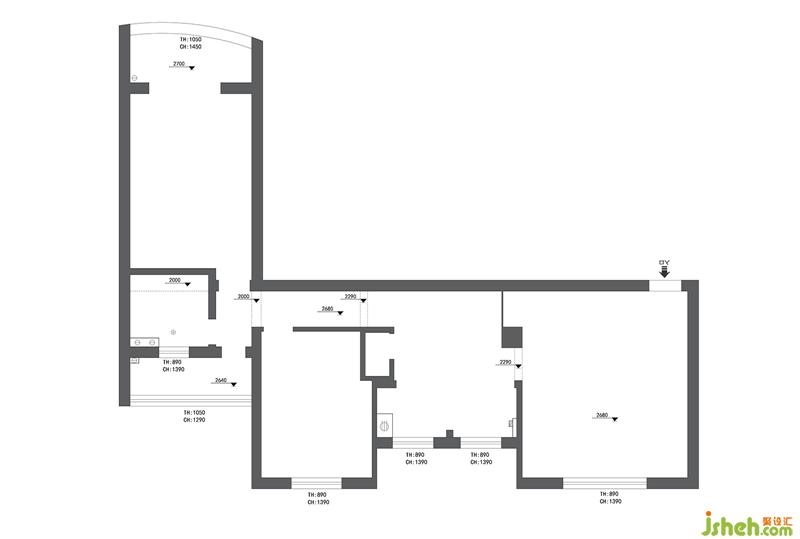 2、廚房封閉式空間很小,整個(gè)過道比較浪費(fèi),而且動(dòng)線很繞。過道采光也比較差。