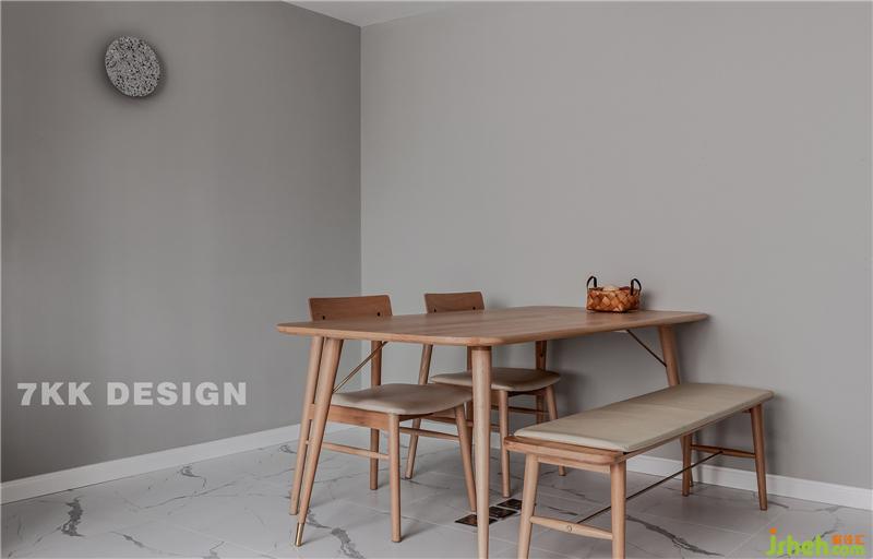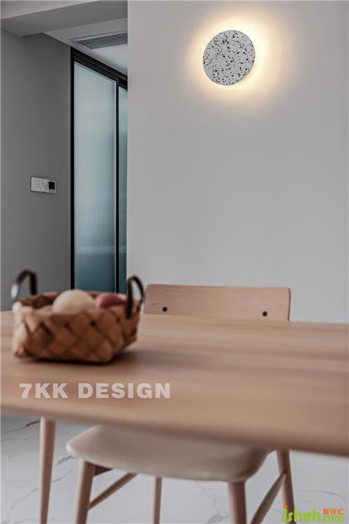 進(jìn)門定制一整排頂天立地的白色鞋柜收納柜+裝飾柜,鏤空的設(shè)計(jì)讓柜體不會(huì)顯得厚重,擁有通透性,既美觀又實(shí)用。 餐客廳中間采用玻璃做隔斷,可封閉可獨(dú)立的設(shè)計(jì)讓空間有了彈性。餐廳墻面頂部都以白色為主,地面采用白色紋理地磚拼接,原木色餐桌椅搭配,淡雅舒適,滿足業(yè)主希望在繁忙的一天工作后,回到家中去找尋一份寧靜與溫暖的訴求,讓業(yè)主回歸家、回歸生活、回歸自然。