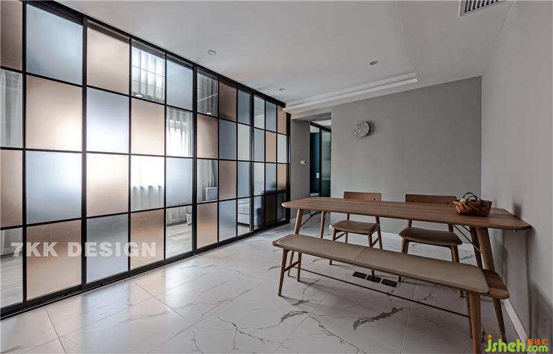 拉上玻璃移門,彩色的塊狀玻璃讓原本質(zhì)樸,簡(jiǎn)約的空間瞬間多了份不一樣的色彩,讓原本單調(diào)的生活也變得多姿多彩,透過若隱若現(xiàn)的玻璃讓人產(chǎn)生無限遐想上海裝修設(shè)計(jì),幻想玻璃后面的世界。即使拉上玻璃也不影響餐廳采光,還是一樣干凈、清爽,明亮,同時(shí)也讓整體空間富有不一樣的意境。功能劃分也比較清晰明了。