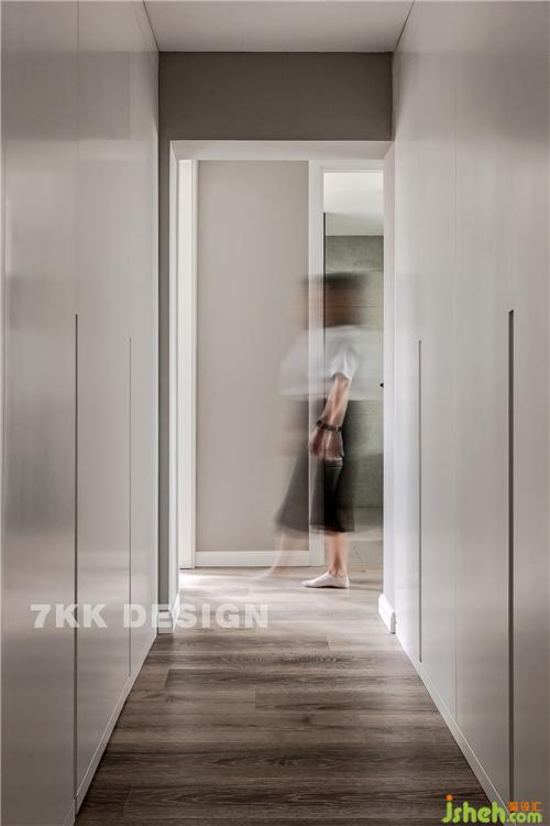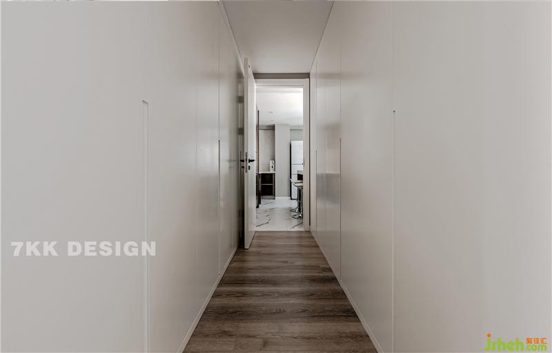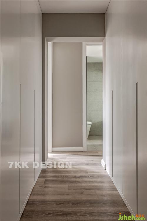 縮小兒童房空間,充分利用走廊兩側(cè)空間做兩排到頂衣帽間,收納超強大。白色柜門板,內(nèi)凹式隱形把手。上海裝修設(shè)計左側(cè)中間留有隱形門后面是兒童房。整個走廊空間簡潔明快的線條感與極簡主義相得益彰。隱藏式設(shè)計也為生活帶來不一樣的驚喜。