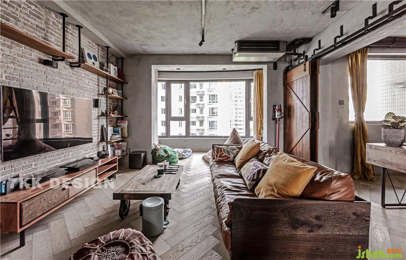 雖說工業(yè)風(fēng)在一般的應(yīng)用中給人冷的感覺,但是在本案的整體搭配上很好的利用冷暖結(jié)合,打造出粗獷而又溫潤的空間住宅。客廳大面積淺色系地板鋪貼,暖色系皮質(zhì)沙發(fā)搭配質(zhì)感大氣,燈具選用簡易滑軌燈,炫酷時尚,木質(zhì)電視柜質(zhì)感而細(xì)膩。帶有滑輪做舊的茶幾靈活個性時尚。
