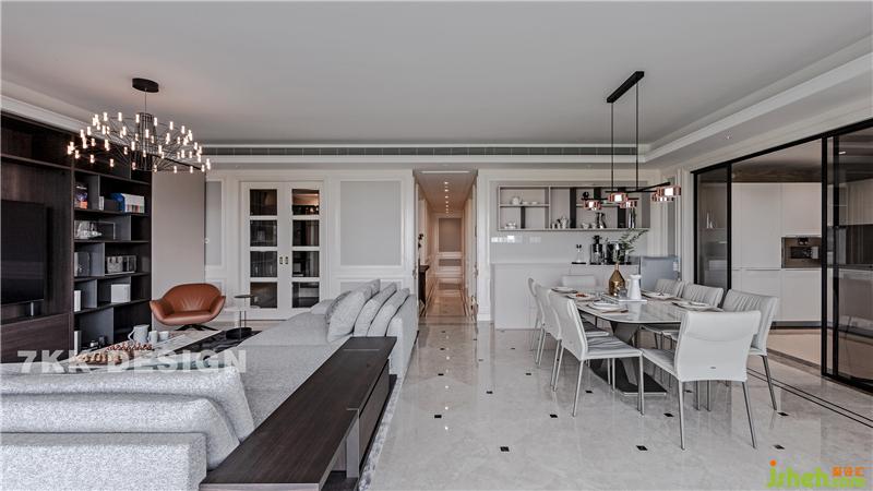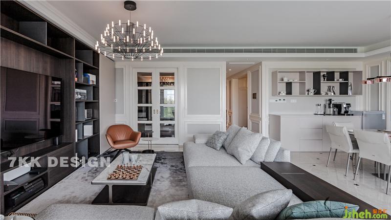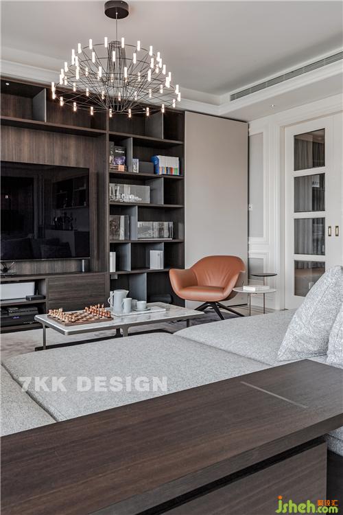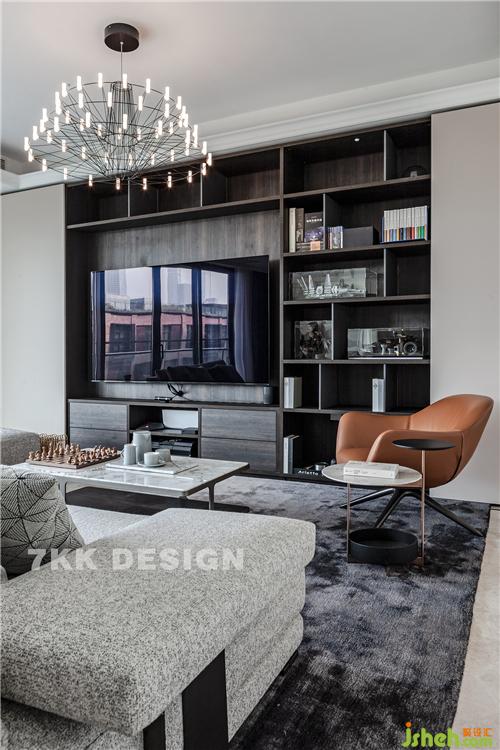 客廳,設(shè)計師在對電視柜的設(shè)計上,柜門采用自用活動的移門形式,業(yè)主可以很隨性的隨時隱藏或展示自己想要的功能需求。