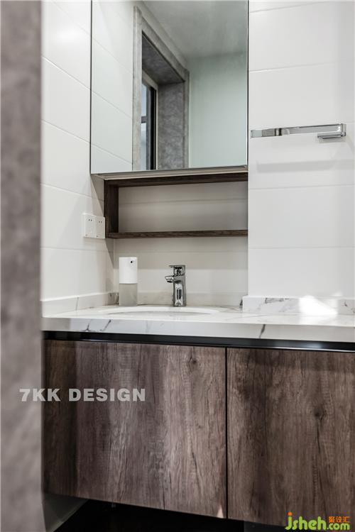 衛(wèi)生間改造成一個,設(shè)計成干濕分離。簡約的白色方塊瓷磚,簡約清爽,鏡面打開里面可以放置業(yè)主平時收納的化妝用品和日常用品。