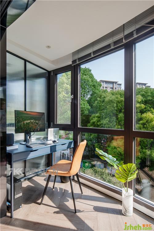 客廳陽(yáng)臺(tái)一側(cè)作為書房使用,陽(yáng)臺(tái)另一側(cè)是晾曬洗衣空間。陽(yáng)光灑進(jìn)來(lái),光和影塑造一副時(shí)光靜好的畫面。去拍攝時(shí)業(yè)主剛好在這里度過(guò)他美好的下午時(shí)光,打游戲中。在公辦時(shí)如果光線很強(qiáng)可以放下百葉窗,視覺(jué)效果也很贊。平時(shí)晚上男業(yè)主在這辦公也不會(huì)打擾到女業(yè)主休息。