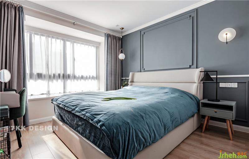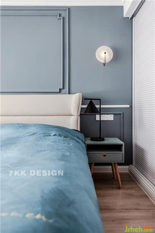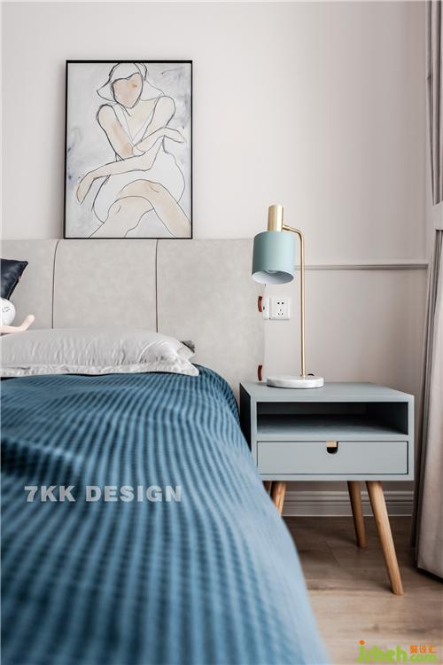 業(yè)主真的是比較喜歡藍(lán)色的,床品選擇藍(lán)色的搭配+床頭柜一抹綠色點(diǎn)綴,營(yíng)造靜謐的睡眠空間。