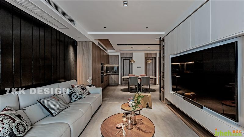 客餐廳一體,南北通透,沙發(fā)2.8m可3人座,:黑白永遠是經(jīng)典永不會過時的色彩,背景墻成品定制黑色細木條造型木飾面,與電視背景墻白色木飾面柜體色調(diào)形成明顯的色調(diào)對比,簡單而不失藝術(shù)魅力。