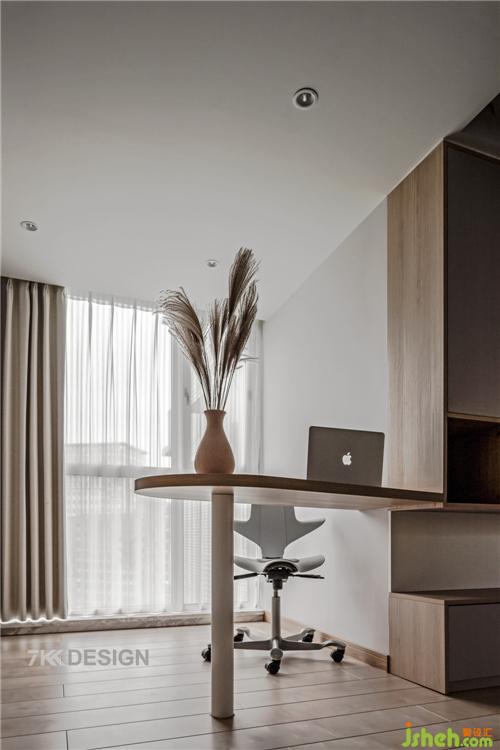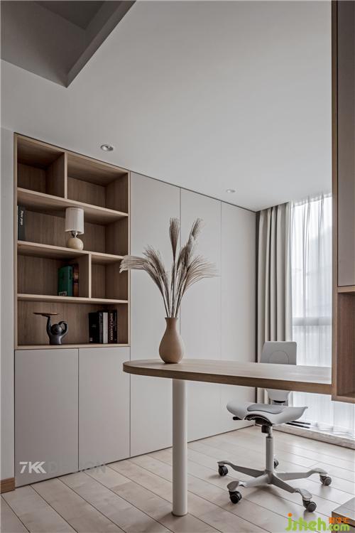 定制柜到底的拐角,陽臺空間布局為閱讀區(qū)+工作區(qū),平常可以陪小朋友在陽臺,沙發(fā)處一起看書,一起成長。還可以一邊處理工作,小朋友在旁邊看書,互不打擾,又相互聯(lián)系。