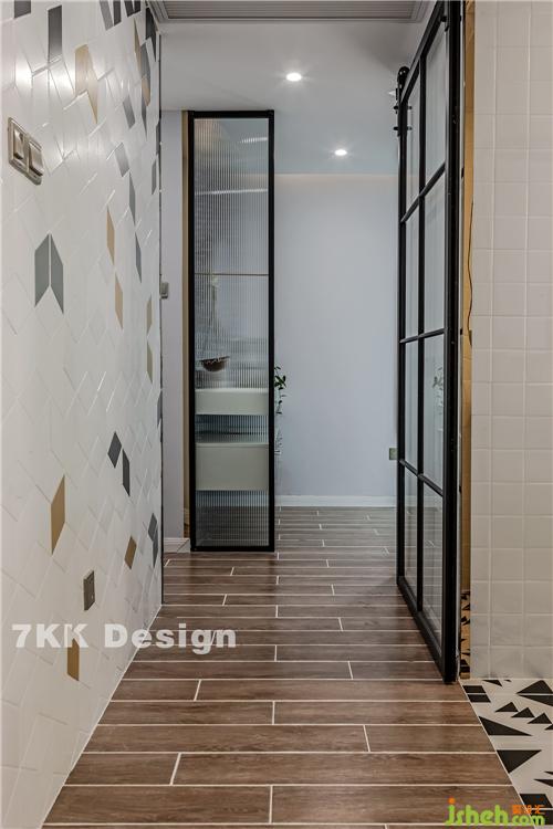 走廊直通衛(wèi)生間、臥室、廚房。通過(guò)干區(qū)的透明隔斷以及廚房透明谷倉(cāng)門所照射進(jìn)來(lái)的自然光上海室內(nèi)設(shè)計(jì)師,增加了整個(gè)走廊的采光度。