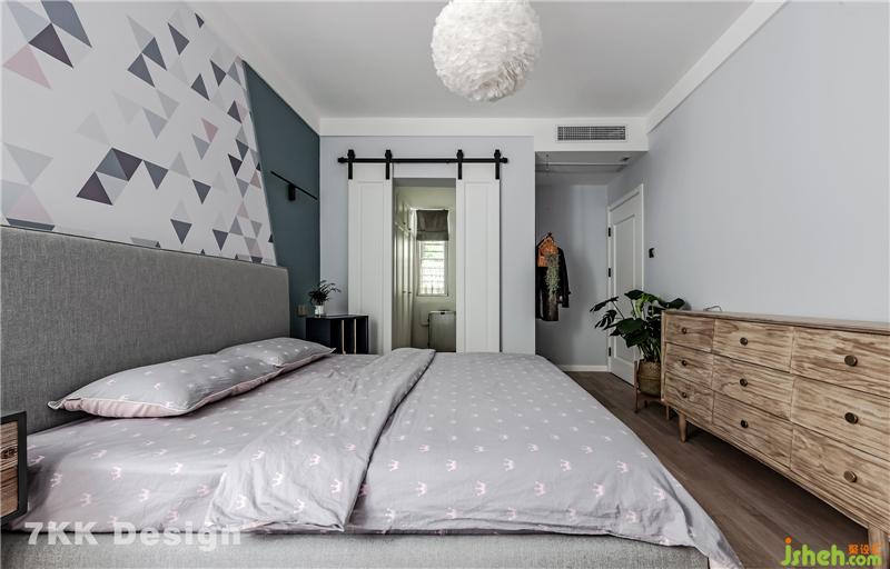簡(jiǎn)約的墻紙, 配合天然質(zhì)地的軟裝和明快的色調(diào), 使得整個(gè)空間寬敞而舒適。