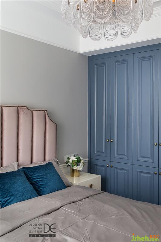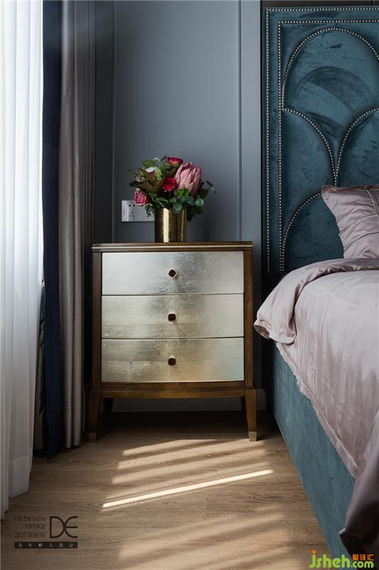 女兒房用藍(lán)灰和粉色打造,潔凈明亮;絲絨床背輔以金屬擺件,精致乖巧。已經(jīng)畢業(yè)的女兒悄悄長成了大姑娘,所以床頭的妝臺設(shè)計(jì)必不可少;花瓣造型的吊燈,輔之玻璃材質(zhì)的通透,柔美而浪漫。
