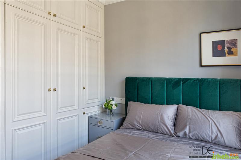 次臥多在老人過來居住時使用,整體風(fēng)格典雅而嫻靜,旨在打造舒適安靜的睡眠空間。
