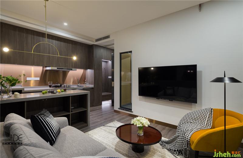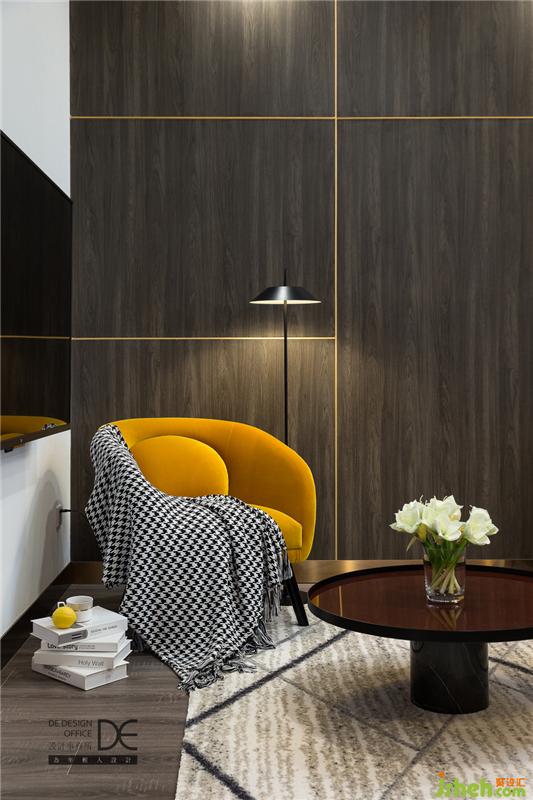 客廳是由吧臺(tái)和硬包床頭“圍起來(lái)”的空間,整體造型簡(jiǎn)潔,木飾面板+不銹鋼收口線,重慶設(shè)計(jì)師賦予了空間延伸感,讓空間不再局促。舒適的沙發(fā),氛圍恰當(dāng)?shù)拈喿x角,黃色單椅成為了點(diǎn)睛之筆。