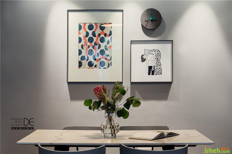 客廳的色彩以灰色為主基調(diào),輔之少量的綠植、粉色、橘黃、玫瑰紅,讓整個(gè)空間安靜而不寡淡,反之更具生趣。