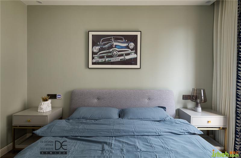 孩子時刻不在成長,在兒童房的設計當中硬裝突出質感,軟裝定義童趣;草綠色墻面與淺灰色搭配,寧靜而溫馨,床頭的掛畫既是童趣的體現也是新鮮感的來源,承載著業(yè)主夫婦對孩子未來的遠矚。