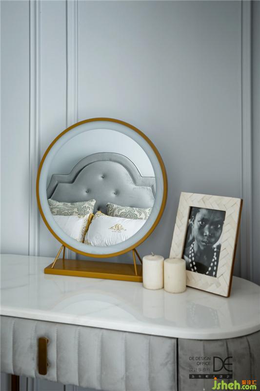 飽和度較低的睡眠空間,視覺感受舒適自然,女主人化妝臺的加入,增加了溫柔恬淡之感,營造出優(yōu)雅低調(diào)、毫不張揚的空間氛圍。