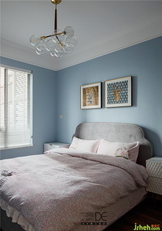 另一間臥室主打溫柔舒適的藍色,用簡約的床頭柜、精致的掛畫,營造出放松的休憩環(huán)境。這個房間暫時作為次臥使用,不久后也會成為弟弟的專屬房間。