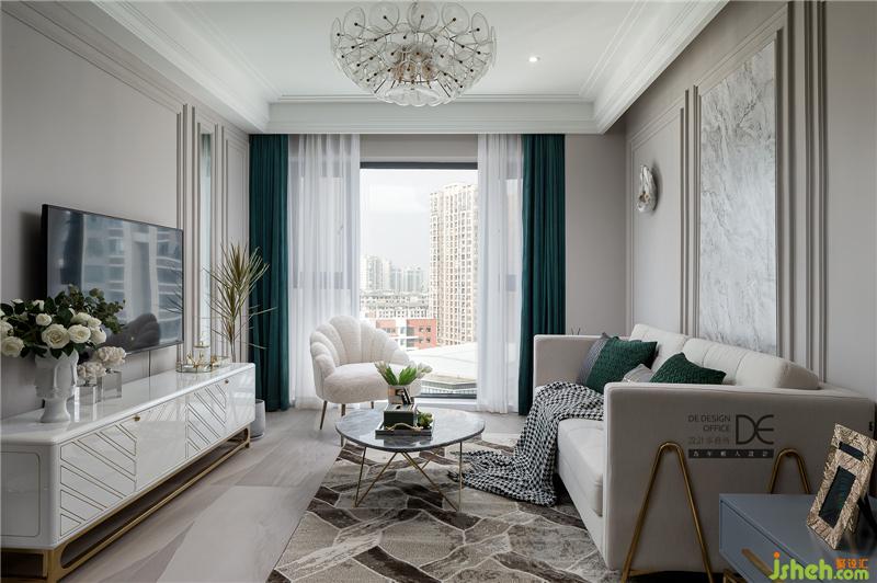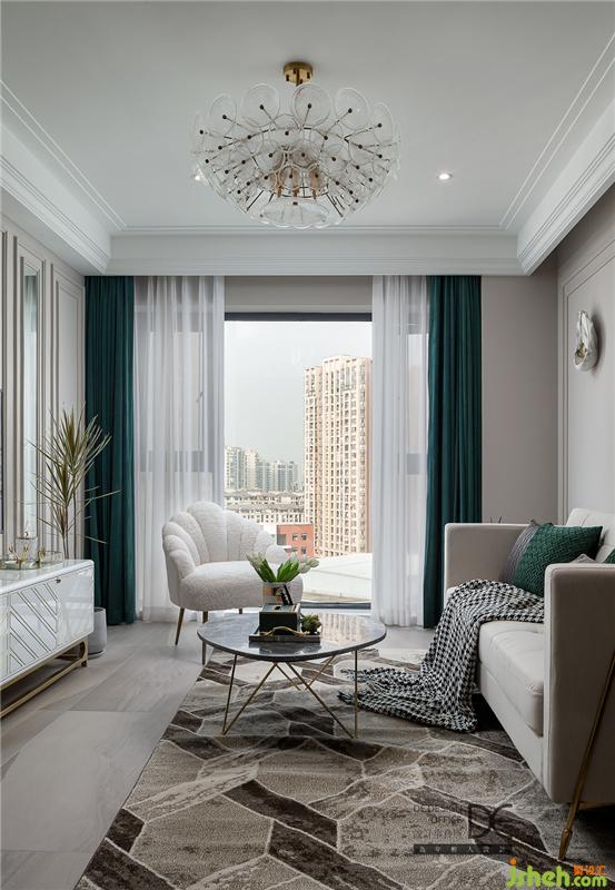 客廳精致的細(xì)節(jié)中透露出一絲浪漫的復(fù)古情調(diào),落地窗使光線貫穿著整個空間,看出去的視野開闊通透。