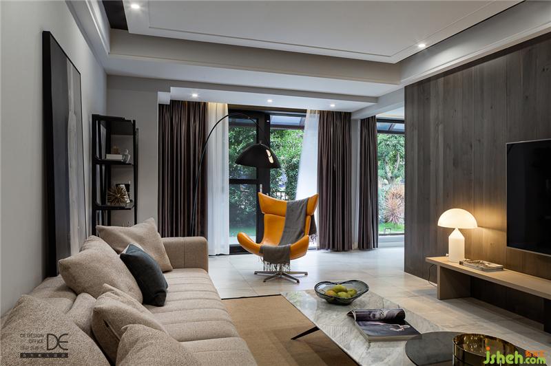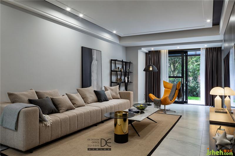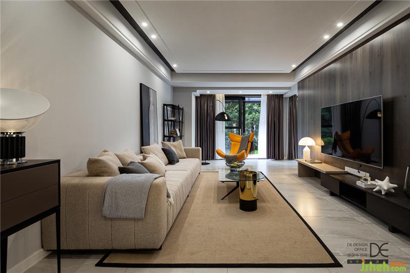 超長客廳空間,簡潔的色塊與樸實的材質(zhì)及現(xiàn)代家私的組合,顯現(xiàn)出現(xiàn)代空間簡潔安靜的氛圍。當家人在其中穿行停留時,家人成為了空間的主角,空間承載著家人之間的互動。