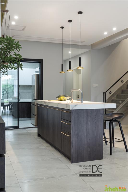 娟姐先生對設計師提出的唯一要求就是餐廚空間要滿足川菜制作條件和朋友間美食互動的條件。老薛將中廚空間+西廚空間+餐廳空間一字排開,完美滿足了男業(yè)主的需求。