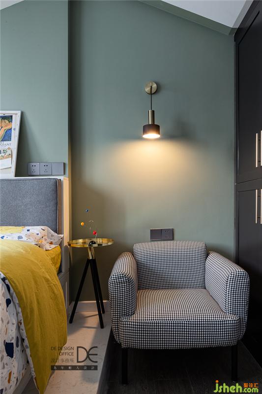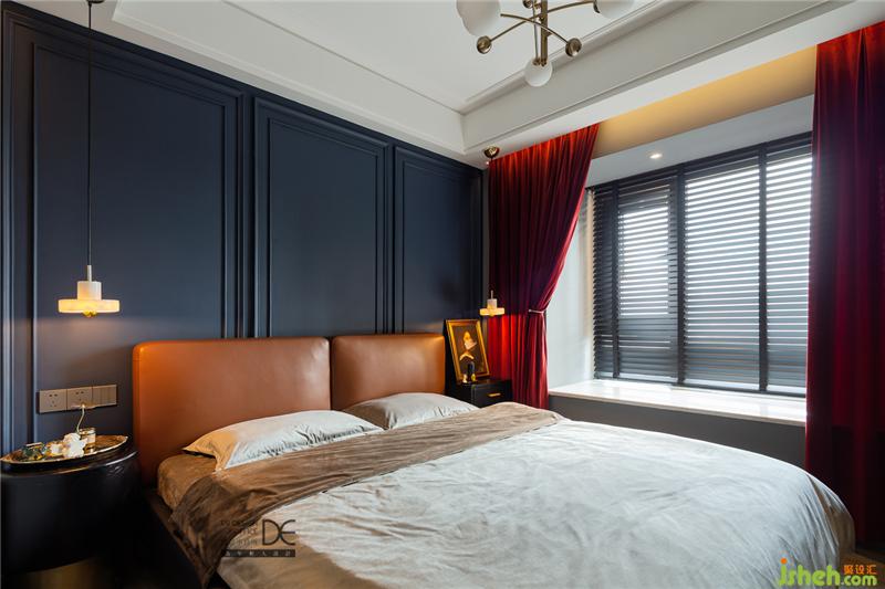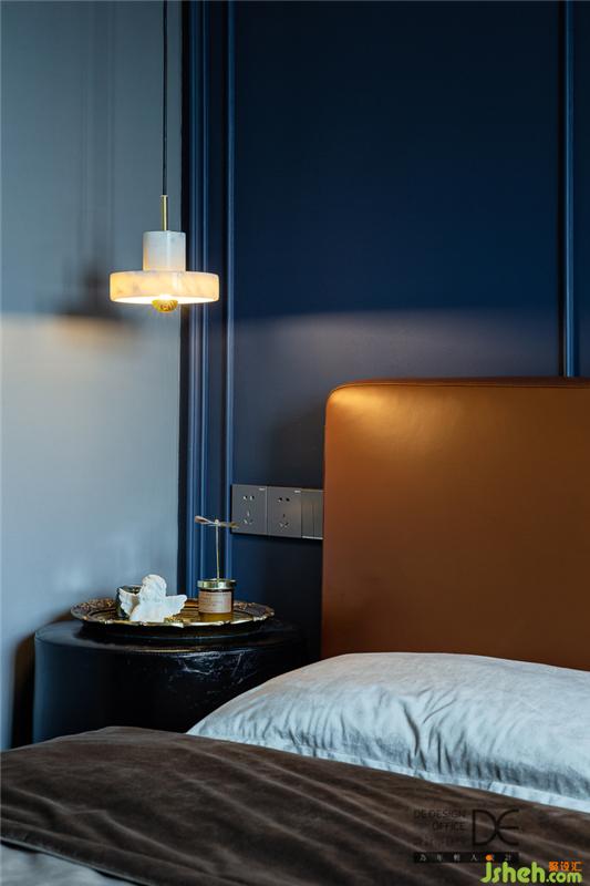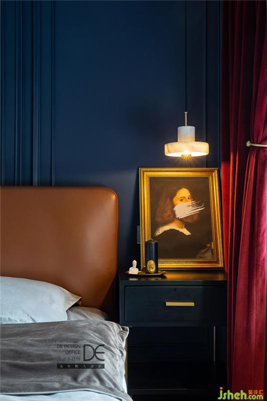 走進主臥,讓人眼前一亮的撞色,賦予空間更多的生命力。窗簾盒里的燈光灑向如絲綢般的窗簾,有明有暗,別有一番韻味。