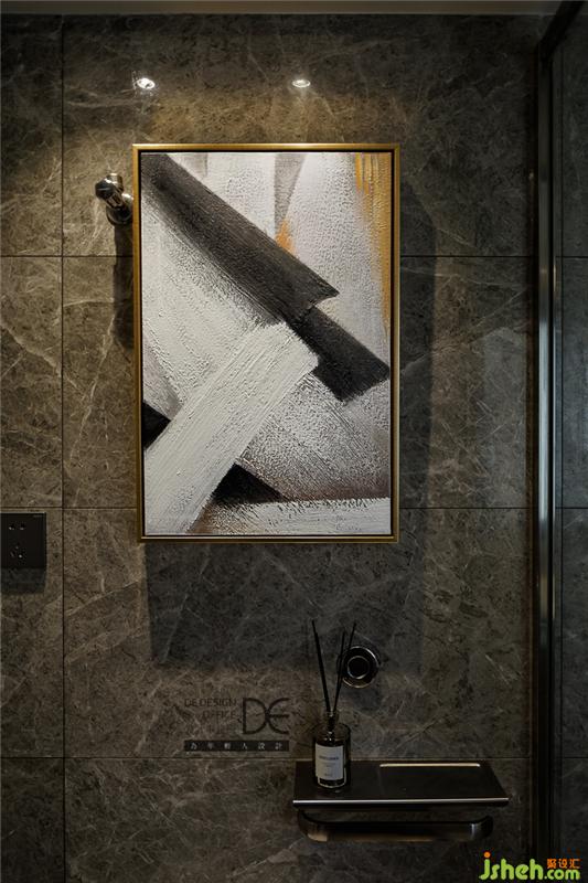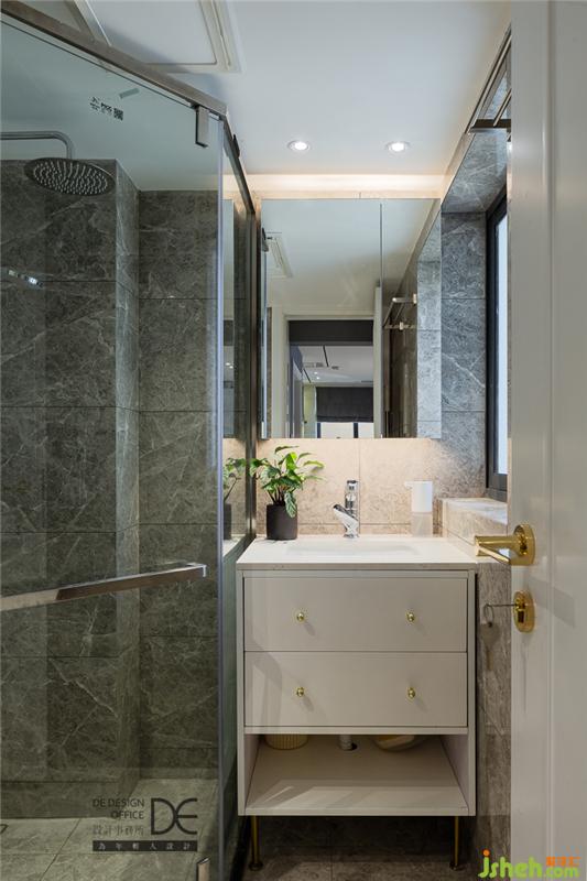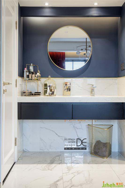主衛(wèi)進行了干濕分區(qū)同時增加了梳妝臺的功能,主臥的入戶空間也得以擴大,一舉兩得。燈帶的加入為主衛(wèi)帶來了一絲神秘感。