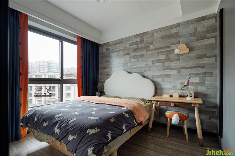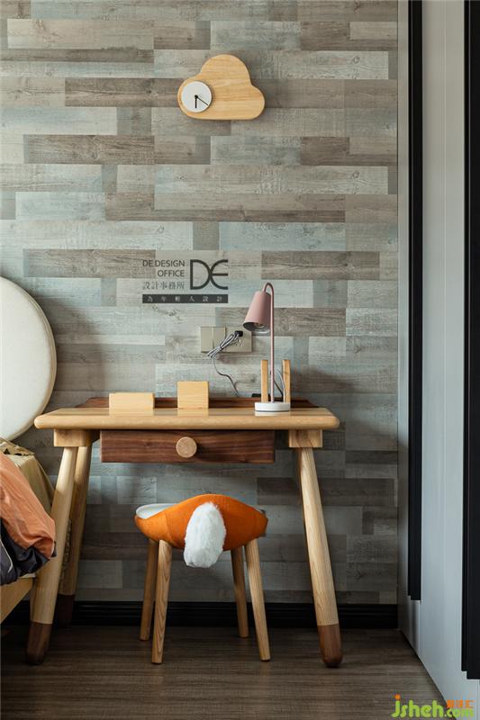 兒童房不是傳統(tǒng)意義上色彩繽紛的樣子,木色元素的加入讓這里與其他空間相區(qū)別。背景采用了木地板上墻,通過軟裝設計師的巧手點綴,整個空間溫和而有趣,給孩子打造了一個暖心又不失童趣的成長空間。