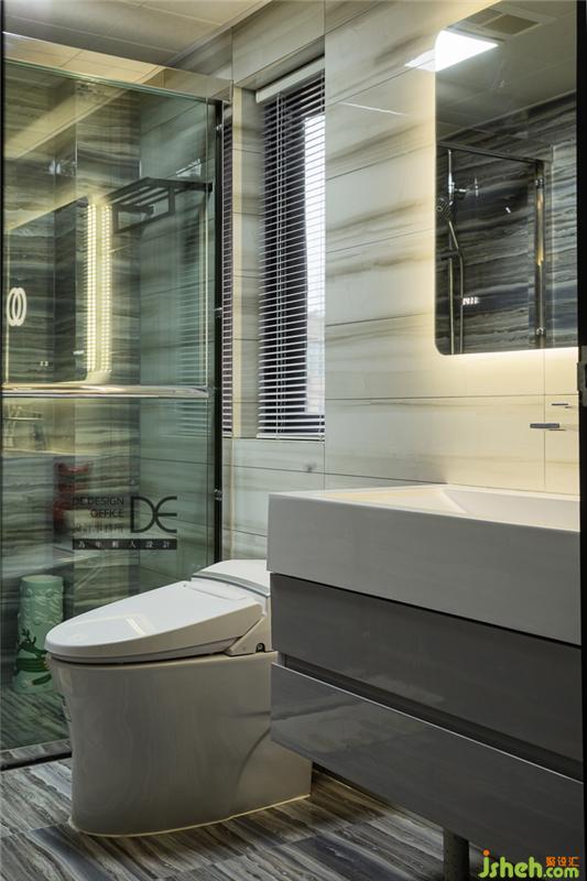 兩個衛(wèi)生間都采用了主色搭配白色的組合方式,不同色彩和材質(zhì)的排列,賦予了不一樣的靈動之感。
