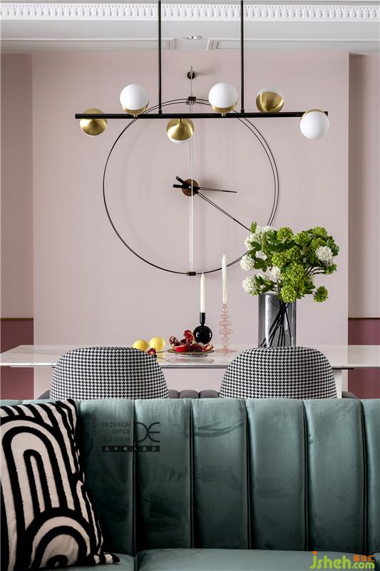 乍一看,整個(gè)客餐廳都充盈著粉色,但靜觀一會(huì)兒會(huì)發(fā)現(xiàn),這個(gè)空間絕不止「粉色」這么簡(jiǎn)單!