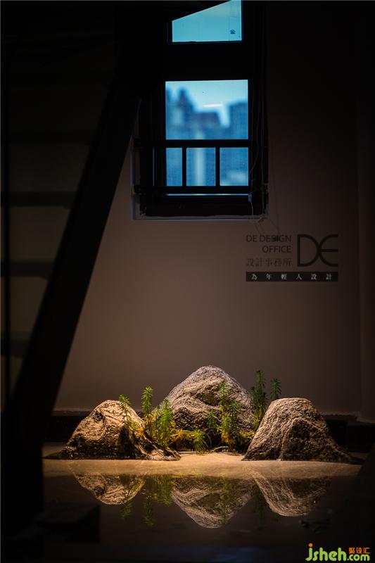 樓梯下的造景魚(yú)池,是這個(gè)家里獨(dú)樹(shù)一幟的風(fēng)景。光影效果下,小魚(yú)池也是一個(gè)山川湖海大世界。