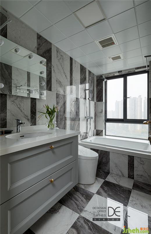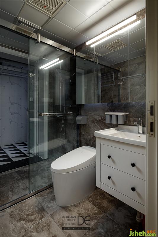 主衛(wèi)、次臥均主打黑白灰色調(diào),拼色的大理石紋路墻地面,精致而有趣,無形中提升著空間質(zhì)感。