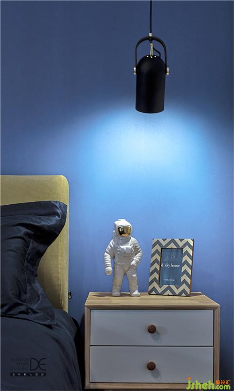 兒童房設(shè)計(jì)為藍(lán)色調(diào),像浩瀚大海,也似星辰宇宙,代表著智慧和勇敢,給予孩子充分的想象和創(chuàng)造靈感,希望他在這里的氛圍中,開拓屬于自己的小世界。