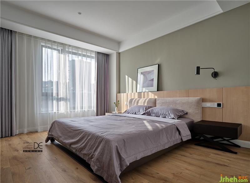 暖灰色的乳膠漆奠定了主臥清爽溫馨的基調(diào),墻面干凈整潔,布藝床頭靠背和木飾面床頭背景墻搭配下,空間顯得柔和舒適,整體感覺非常協(xié)調(diào)溫馨。無論在外承受了多少工作和生活的壓力,回到家里,都能卸下疲憊,放心地躺下,享受這份家賦予的寧靜與輕松。